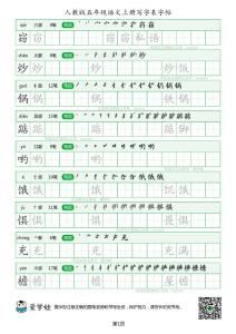 人教版小学一年级语文下册生字笔顺