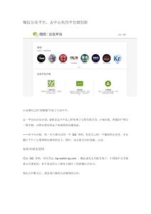 微信公众平台,去中心化的平台级创新日前微信已经“悄悄地”开放了公众平台。 这一平台向公众开放,意味着这个产品已经明确了它的发展方向,开始启航。普通用户得以一窥全貌,并将在新的形态下形成新的沟通场景。