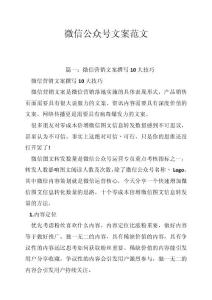 篇一:微信营销文案撰写10大技巧 微信营销文案撰写10大技巧 注:微信订阅号页面只显示题目的前13个字,所以切记:不要让无关紧要的标题占据了你那13 个字的黄金位置! 大图片建议尺寸:360像素 20