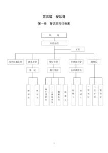 第三篇餐饮部第一章 餐饮部岗位设置第二章 餐饮部工作内容管理范围: (一)管辖区域:中餐厅、风味厅、大小包厢、多功能宴会厅、厨房、二级仓库、大堂吧、酒吧、各大小会议室及贵宾接待室。(二)卫生责任区域: