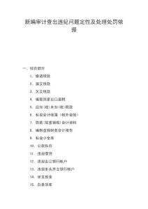 新编审计查出违纪问题定性及处理处罚依据一、综合部分 1.偷逃税款 2、漏交税款 3.欠交税款 4.骗取国家出口退税 5.应扣(收)未扣(收)税款 6.私设会计帐簿(帐外设帐) 7.隐匿(故意销毁)会计