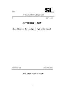 UDC中华人民共和国水利行业标准 SL279-2002水工隧洞设计规范 Specification hydraulictunnel 2002-12-10 发布 2003-03-01 实施 中华人民共和