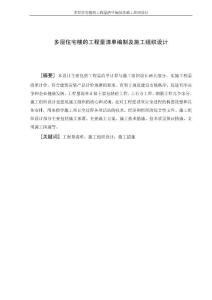 多层住宅楼的工程量清单编制及施工组织设计多层住宅楼的工程量清单编制及施工组织设计 [摘要] 本设计主要包括工程量清单计算与施工组织设计两大部分。实施工程量清单计价,符合建筑安装产品计价规律的要求,有利