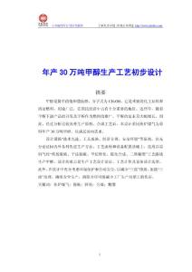 年产30万吨甲醇生产工艺初步设计年产30万吨甲醇生产工艺初步设计年产30万吨甲醇生产工艺初步设计