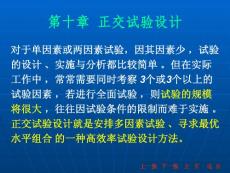 第十章正交试验设计对于单因素或两因素试验,因其因素少 ,试验的设计 、实施与分析都比较简单 。但在实际工作中 ,常常需要同时考察 3个或3个以上的试验因素 ,若进行全面试验 ,则试验的规模将很大 ,往