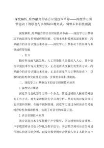 深度解析跨界融合_深度学习引擎驱动下的革命性语音识别技术原理及在多领域..
