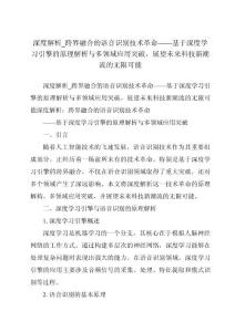 深度解析跨界融合_深度学习引擎驱动下的革命性语音识别技术原理及在多领域应用的突破性进展——时代引领的语音识别技术革命深度解析跨界融合_深度学习引擎驱动下的革命性语音识别技术原理及在多领域应用的突破性进展——时代引领的语音识别技术革命深度解析跨界融合_深度学习引擎驱动下的革命性语音识别技术原理及在多领域应用的突破性进展——时代引领的语音识别技术革命