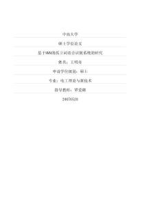 中南大学硕士学位论文基于HMM的孤立词语音识别系统的研究姓名:王明奇申请学位级别:硕士专业:电工理论与新技术指导教师:覃爱娜20070520硕士学位论文摘要语音识别(SpeechRecognition