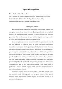 SpeechRecognition Victor Zue, Ron Cole, WayneWard MIT Laboratory ComputerScience, Cambridge, Massach