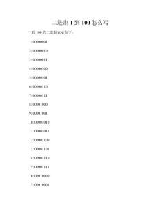二进制1到100怎么写二进制1到100怎么写二进制1到100怎么写