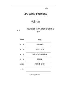 编号淮安信息职业技术学院 毕业论文 大众朗逸轿车ABS系统的结构原理与检修 学生姓名 828143指导教师 讲师顾问教师 二〇一六年十一月摘 制动系统(Automobilebraking system
