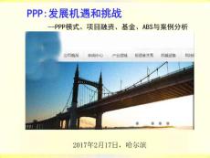 2017年2月17日,哈尔滨PPP:发展机遇和挑战 --PPP模式、项目融资、基金、ABS与案例分析 一、PPP—发展机遇与挑战 二、PPP融资特点 三、PPP风险及控制措施 四、项目融资及日照电厂案