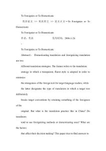 - To Foreignize or To Domesticate_英语论文To,or,to,英语论文,论文To