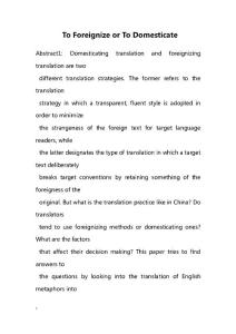 - To Foreignize or To Domesticate_英语论文To,or,to,英语论文,论文To