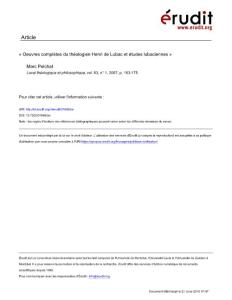 232;tes du th 233;ologien Henri de Lubac et 233;tudes…