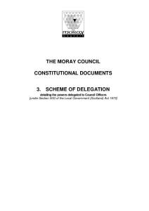 - MORAYCOUNCIL CONSTITUTIONAL DOCUMENTS 3. SCHEME DELEGATIONdetailing powersdelegated CouncilOfficers