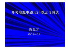 开关电源电路设计要点与调试开关电源电路设计要点与调试陶显芳2012.9.1512下面是本次技术交流的主要内容下面是本次技术交流的主要内容1.开关电源电路设计需要考虑的几个要素2. 常用开关电源3. 开