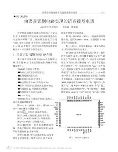 语音集成电路在我国已经得到了大量应用 ,但主要是用于语音记录,而语音识别电路至今使用仍不够广泛 。珠海特思高电子公司TS G110 可以识别 10 个语音 , 因而可用于识别0~9 这 10 个数字 , 将它与语音拨号电路配合起来就可以实现语音拨号电话。