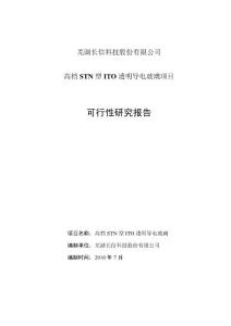 - 芜湖长信科技股份有限公司高档STN 型ITO 透明导电玻璃项目 可行性研究报告 项目名称:高档STN 型ITO 透明导电玻璃 编制单位:芜湖长信科技股份有限公司 编制时间:2010 芜湖长信科技股份有