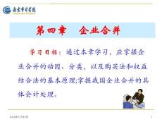 2016年11月12日1学习目标: 学习目标:通过本章学习,应掌握企 通过本章学习,应掌握企业合并的动因、分类,以及购买法和权益 业合并的动因、分类,以及购买法和权益结合法的基本原理 结合法的基本原理