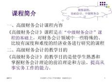2007.3东北财经大学会计学系列教材 高级财务会计 1一、高级财务会计课程内容《高级财务会计》课程是在“中级财务会计”课程的基础上,对财务会计领域中一些特殊的、比较有深度和难度的经济业务进行研究的课