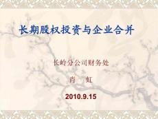 长岭分公司财务处肖虹2010.9.15主要内容 长期股权投资1、核算内容2、长期股权投资成本(初始计量)3、长期股权投资的后续计量4、长期股权投资的处置 企业合并1、企业合并类型2、同一控制下的企业合