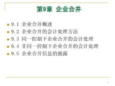 9.1企业合并概述 9.2 企业合并的会计处理方法 9.3 同一控制下企业合并的会计处理 9.4 非同一控制下企业合并的会计处理 9.5 企业合并信息的披露2 1、学习内容企业合并会计是以企业合并准则