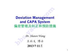 DeviationManagement CAPASystem Dr. Shawn Wang 博士2013年11月 2 目录 偏差管理的法规要求和基本要义 偏差的分类、适用范围