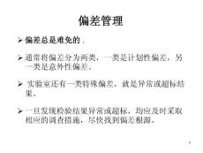 .通常将偏差分为两类,一类是计划性偏差,另一类是意外性偏差。实验室还有一类特殊偏差,就是异常或超标结果。一旦发现检验结果异常或超标,均应及时采取相应的调查措施,尽快找到偏差根源。2••••••••;;