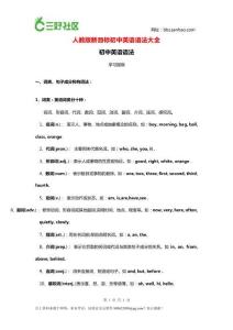 人教版新目标初中英语语法大全初中英语语法学习提纲一、词类、句子成分和构词法:1、词类:英语词类分十种:名词、形容词、代词、数词、冠词、动词、副词、介词、连词、感叹词。1、名词(n.):表示人、事物、地