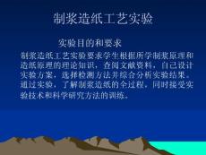 制浆造纸工艺实验 本文档属于精品文档、课件类技术资料,转载请联系作者