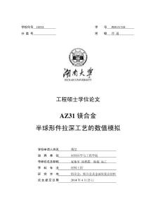 学校代号10532 工程硕士学位论文AZ31 镁合金 半球形件拉深工艺的数值模拟 学位申请人姓名 材料科学与工程学院导师姓名及职称 铝合金、镁合金及金属基复合材料论文提交日期 2014 级:普通湖南大