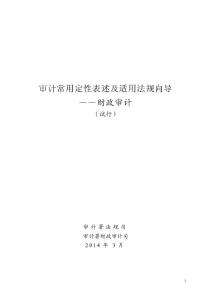 审计常用定性表述及适用法规向导——财政审计 (试行) 编纂及使用说明财政审计是国家审计的法定职责、永恒主题和首要任务。财政审计坚持“评价总体、揭露问题、规范管理、促进改革、提高绩效、维护安全”的审计思