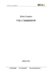 卓豪(北京)技术有限公司Tel: 400-660-8680 Fax: (010) 82637827 Http:// ZohoCreator产品入门快速使用