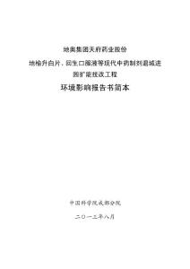 四川药业股份地榆升白片、回生口服液等现代中药制剂退城进园扩能技改工程环境影响报告书简本.doc
