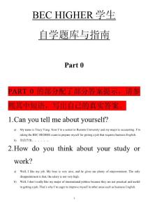 BECHIGHER学生自学题库与指南Part 0PART 0的部分配了部分答案提示,请参照其中短语,写出自己的真实答案。Can you tell me about yourself?My name T