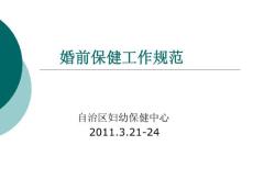 自治区妇幼保健中心2011.3.21-24 一、婚前保健概论 二、婚前保健服务内容 三、婚前保健服务机构及人员的管理 四、婚前保健服务工作的管理 是实现《自治区妇女发展规划纲要》和《自治区儿童发展规划