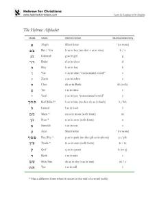 ChristiansLearn HebrewAlphabet MARK NAME PRONOUNCED TRANSLITERATIONa Aleph Silent letter vine;“conso