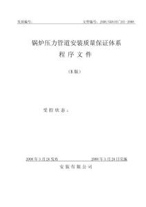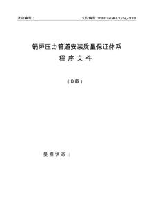 - 发放编号:文件编号:JNDE/GGB(01~24)-2008 锅炉压力管道安装质量保证体系 月26发布 2008 月26日实施 安装 锅炉压力管道安装质量保证体系 1、文件控制程序JNDE/GGB01