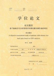 - 分类号:密级:U 文论文题目基于脑电信号分析客观评估慢性神经根性腰痛的研究英文题目Aobjectiveassessment study chronicradicularlumbago based EE