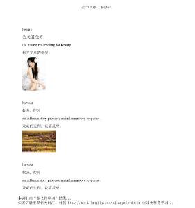 beauty美,美丽,优美 He has realfeeling beauty.他并非真的爱美。 harvest 收获, 收割 inflammatoryprocess; inflammatoryres