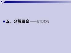 ——打散重构分解组合分解组合是指将同一图形经过几次分解,使之形成不同的形状,而后将这些形状用不同的组合方式进行组合,使之形成多种新的图形,产生意想不到的效果。分割时应注意以下几点.1、面积大小要有所不