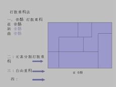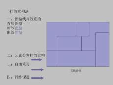 打散重构法一,骨骼线打散重构 直线骨骼 斜线骨骼 曲线骨骼 二:元素分割打散重构 三:自由重构 直线骨骼 四:训练课题 元素打散和重构过程 元素提取 花头 花瓣 莲藕 荷叶 元素打散放大 缩小 整体