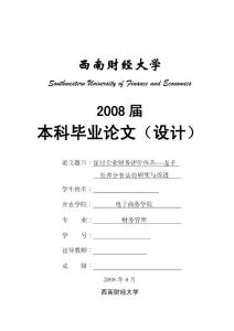 财务评价体系是政府经济管理部门、投资者、经营者、债权人及其他利益相关者为了切实掌握企业的财务状况,将偿债能力分析、营运能力分析、赢利能力分析和发展能力分析等诸多方面的财务指标分析纳入一个有机的整体,系统、全面、综合地对企业财务状况和经营成果进行剖析,从而对企业的经济效益的优劣做出更加准确的评价与判断。它对于确保经营者提高管理效率、投资者提高决策水平,保证债权人的根本利益,提高政府宏观调控水平有着十分重要的作用。然而,现代企业的工作性质和资源配置结构已经发生了变化,传统的财务评价体系己经不能满足对企业进行全面分析与评价的需求。因此,研究企业财务评价体系这一课题是十分有必要的。