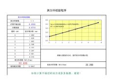 测力环校正数据分析表检定机构数据0300.0 346.410 394.2 15 442.5 20 491.1 25 539.0 30 587.0 数据分析斜率: -31.1633093964截距: 0