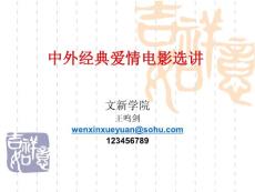 文新学院王鸣剑wenxinxueyuan@sohu.com123456789本课程在梳理爱情电影发展历程的基础上,结合《乱世佳人》《卡萨布兰卡》《罗马假日》《爱情故事》《布拉格之恋》《人鬼情未了》《廊