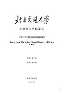 专业硕士学位论文甲骨文中国营销渠道策略研究 Research MarketingChannel Strategy OracleChina 作者:魏洁 导师:祝祖强 北京交通大学 2013年6月学雠姗权