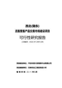 西北(陇东)活畜暨畜产品交易市场建设项目 可行性研究报告 (巟秳编叴:GNZS-KY 2009-109) 项目建设单位:平凉市景兴安格斯牛业有限公司 项目编制单位:甘肃农业工程咨询设计所 间:二一年二