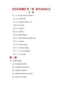 第一章钓草鱼特效饵及制饵秘方 第二章 野钓炸弹饵 第三章 效果特佳的诱鱼方法 第四章 技术交流 第五章 咨询服务 第六章 选杆超市 第七章 选购浮漂超市 第八章 鱼线轮的种类及其使用方法 第九章 鱼钩