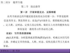 第二部分题型专题新课标高三二轮 英语第二节 技法指导第一讲 仔细审题定点,运筹帷幄高考书面表达的审题谋篇是取得高分的第一步,不管是提纲信息类作文,图表类作文,还是(半)开放作文,都要做到定体裁,定人称